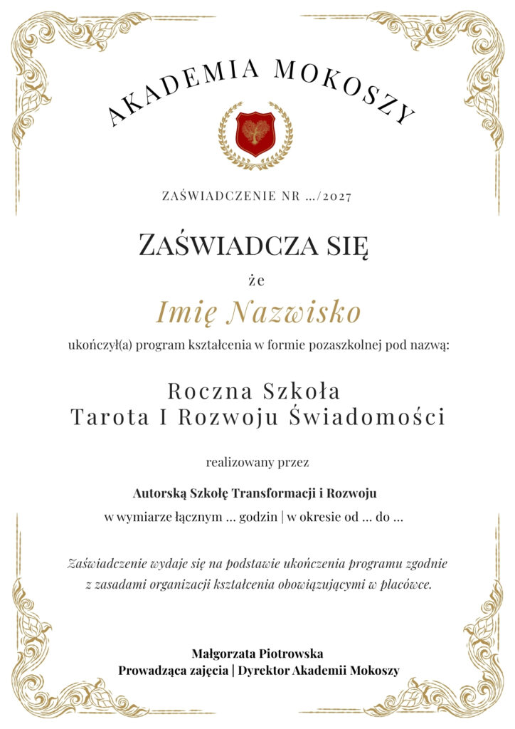 Rocznej Szkoły Tarota i Rozwoju Świadomości.